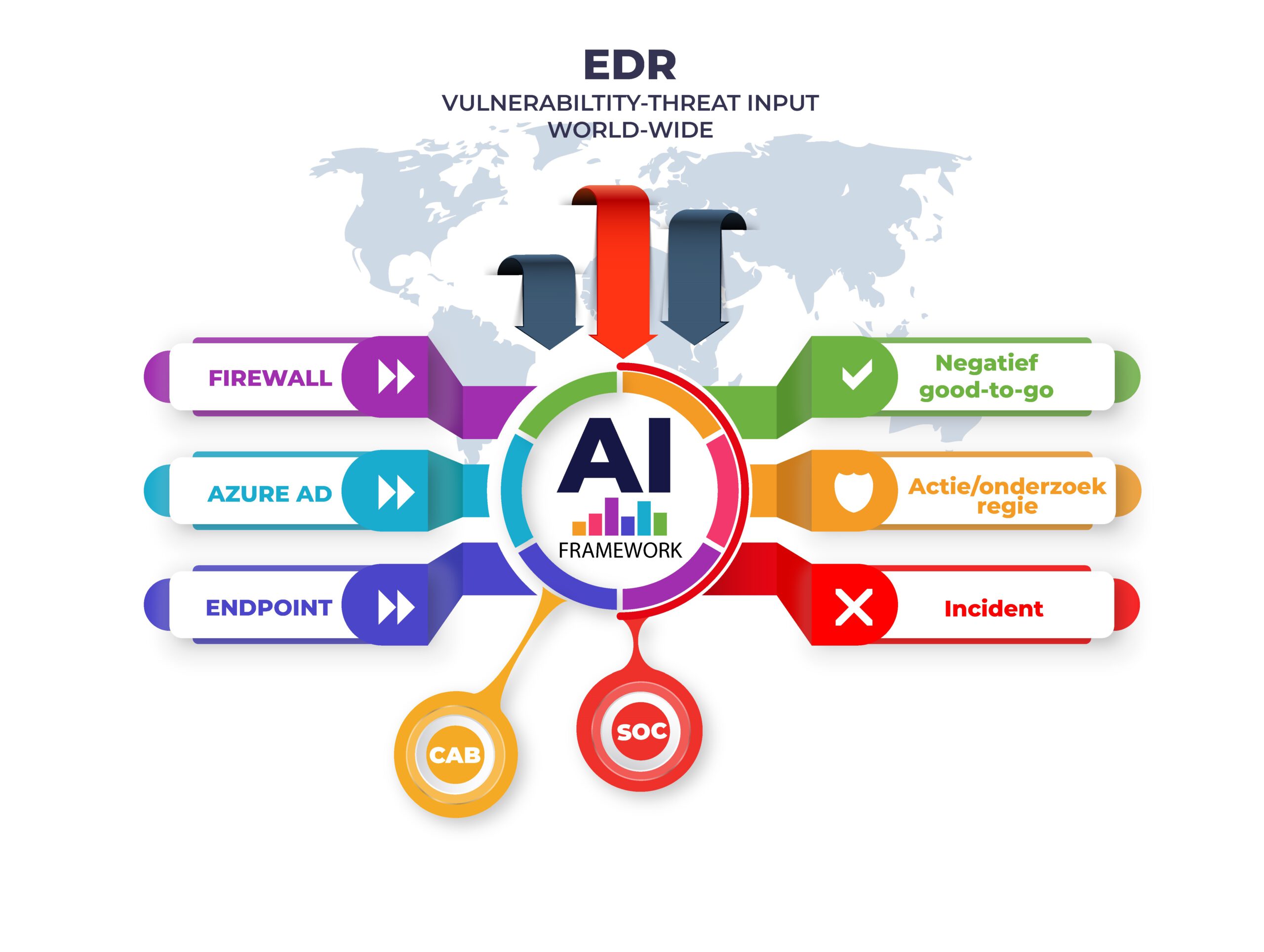 TOP! Meerdere sloten op uw digitale voordeur zorgen dus voor beveiliging van uw ICT. Maar wat als de bedreiging van binnenuit komt? Een IT-apparaat wat niet voldoet aan de veiligheidscondities of een vreemd en besmet apparaat in uw netwerk dat grote schade kan veroorzaken. Onze Network-Acces-Control oplossingen leggen een extra beveiliging aan de binnenzijde van uw ICT omgeving. Zonder de juiste conditionele voorwaarden is toegang tot uw systeem geen optie. Ook uw achterdeur gaat dus op slot! De positieve kant van Artificial Intelligence CAB holland zet Kunstmatige intelligentie in voor het meten en interpreteren van cyberdreigingen. Door 24/7 sensoren in uw IT-systeem uit te lezen zet AI deze af tegen een framework van (potentiële) cyber dreigingen of zwaktes. Zo beschikken wij over real-time informatie en passen hier preventieve en correctieve acties toe door bijvoorbeeld updates uit te voeren of systemen preventief te isoleren. SOC Een extern Security Operations Center keurt 24/7 het digitale vlees van CAB holland. Onze cyber sensoren meten de digitale staat van uw ICT. Deze bevindingen worden samen met ons SOC 24/7 omgezet naar acties of aangepast beleid. Is er toch een kritische dreiging? Wij dammen de oorzaak in en voorkomen schade.